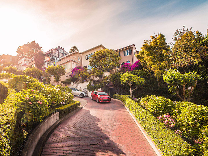 • Con đường hoa Lombard - con đường hoa quyến rũ và kỳ lạ nhất thế giới được xây dựng theo kiểu gợn sóng nhằm làm giảm tốc độ cho phương tiện đi lại. Tốc độ giới hạn tại đây là 8 km/h. Vào mùa xuân và suốt cả mùa hè, con đường Lombard vẫn còn màu sắc, vì nhiều loài hoa đẹp đang nở.