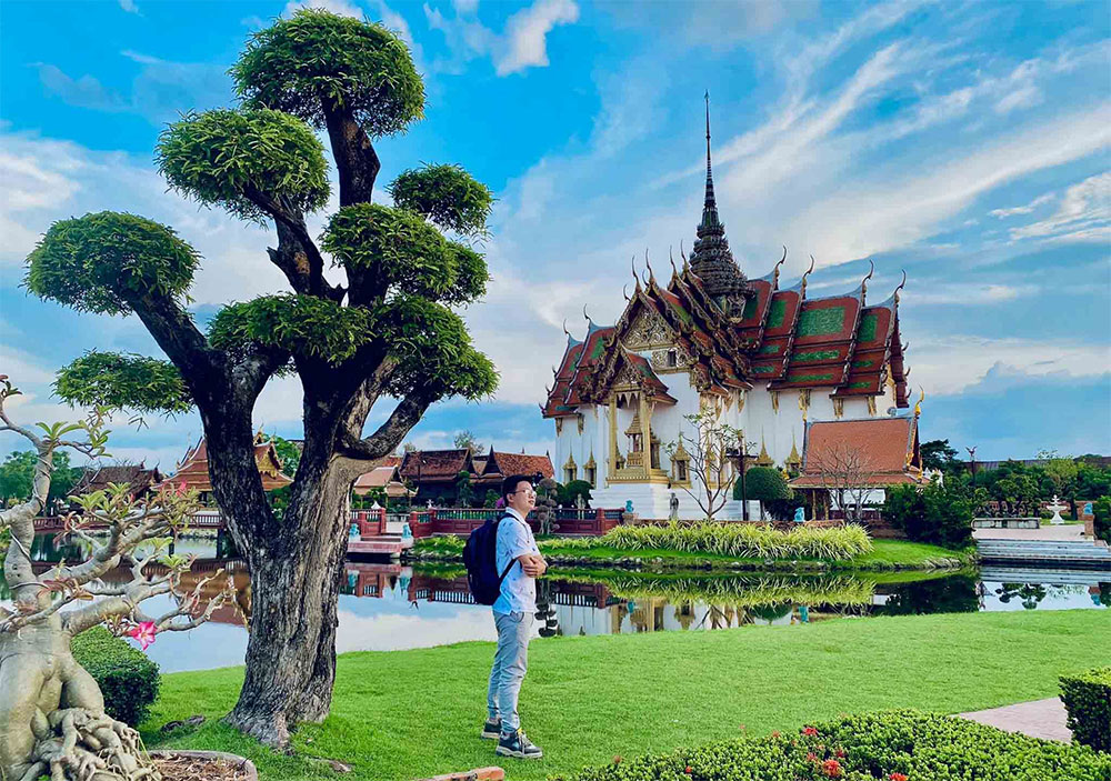 - Đoàn tiếp tục tham quan Muang Boran – Nằm cách thành phố Bangkok gần 35km về phía nam, Muang Boran được mệnh danh là Thái Lan thu nhỏ với hệ thống quần thể, công trình kiến trúc tái tạo lại giống hoàn toàn bản gốc. Đây là một trong những điểm đến được đánh giá là xứng đáng để "check in" nhất khi tới Thái Lan. Muang Boran sở hữu hơn 115 công trình lớn nhỏ gồm các cung điện, đền chùa, tượng đài, thậm chí cả các phế tích đã bị phá hủy đều được phục chế lại theo tỷ lệ đa số là 1:3. Một số công trình còn được xây dựng lại với kích thước 1:1 bằng nguyên với bản gốc. Nơi đây còn được biết đến với cái tên "Ancient City", nghĩa là thành phố cổ kính, và được coi như một bảo tàng ngoài trời đặc biệt nhất tại Thái Lan, nơi lưu trữ những giá trị văn hóa, lịch sử từ thời dựng nước và giữ nước của Thái Lan, với những chi tiết dù nhỏ nhất của các công trình kiến trúc cũng đều được phục dựng lại một cách vô cùng chính xác, tỉ mỉ.