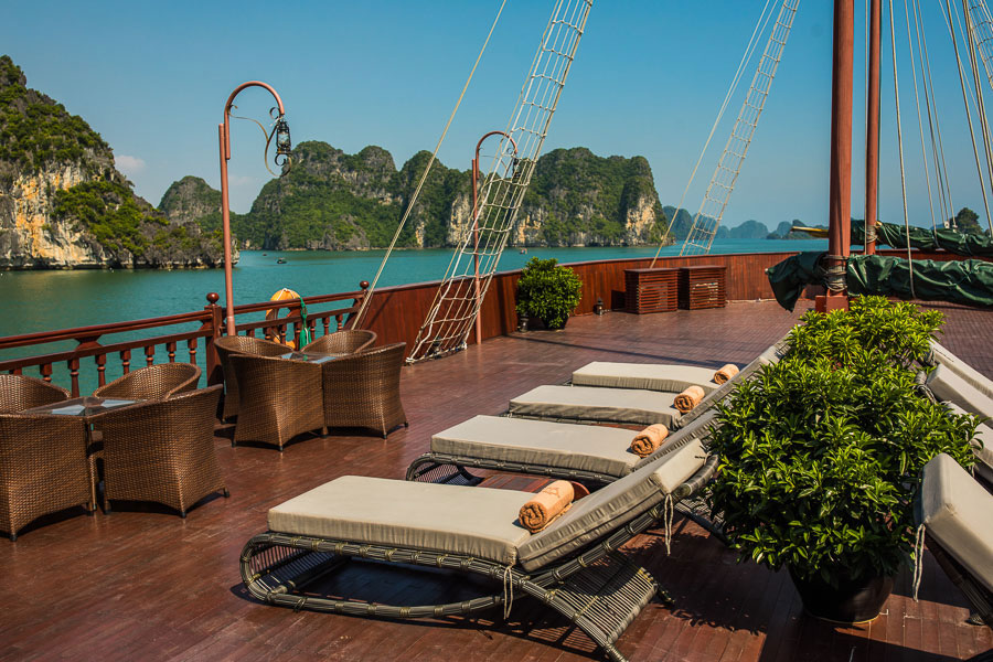 Nothing beats spending watching the sun set over the calm waters of Ha Long Bay, and waking up to a serene morning surrounded by karsts. Relaxing on a sun deck surrounded by magnificent panoramas is the highlight of many a trip.