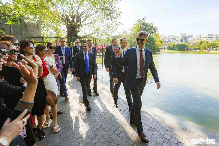 Thái tử Đan Mạch Frederik tại hồ Gươm (Hà Nội) ngày 1-11-2022 - Ảnh: NGUYỄN KHÁNH