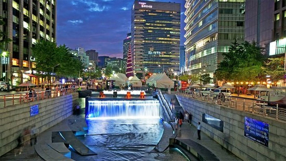 - Tiếp đó Quý khách thăm quan dòng suối nhân tạo Cheng-gye trong lòng thành phó là một dòng suối dài 5,8km chảy qua khu trung tâm thành phố Seoul. Ghé thăm suối nhân tạo Cheonggyecheon ở Hàn Quốc, du khách có thể tản bộ dạo quanh 2 bên bờ để tận hưởng sự bình yên hay tham quan những điểm du lịch nổi tiếng ở Seoul nằm gần đó.