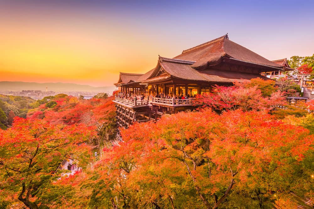 - Thăm quan: Chùa Thanh Thủy – Kyzomizudera: một trong những ngôi đền linh thiêng nhất của xứ sở hoa anh đào với lối kiến trúc độc đáo hoàn toàn bằng gỗ, nằm trên vùng cao ngọn đồi Higashiyama. Toà nhà chính được thiết kế trông giống như 1 kho báu của quốc gia, được nâng đỡ bởi 139 chiếc cột cao 15m. Chùa Kiyomizu được UNESCO công nhận là Di sản Văn hoá năm 1994.