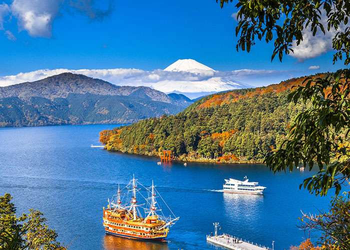 OP1: Quý khách du ngoạn trên hồ Ashi để thưởng thức vẻ đẹp nên thơ khoáng đãng của khí trời mùa xuân Nhật Bản.