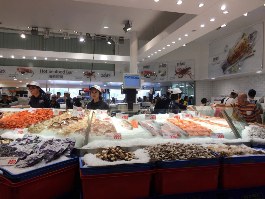 11h00: Xe đón Quý khách từ Port Jackson đi Chợ cá hải sản - Chợ cá Sydney Sydney Fish Market là chợ cá lớn nhất Nam Bán cầu, có sàn đấu giá hải sản của các mối bán buôn thu hút khách đến xem mỗi tuần. Có lịch sử từ năm 1945, đây được mệnh danh là chợ cá lớn thứ ba thế giới. Bước chân vào chợ cá trước hết quý khách sẽ bị choáng ngợp bởi không khí tấp nập của khu nhà hàng và vô vàn hải sản tươi rói từ mọi vùng của nước Australia, nhập khẩu từ New Zealand hay Canada được bày bán.