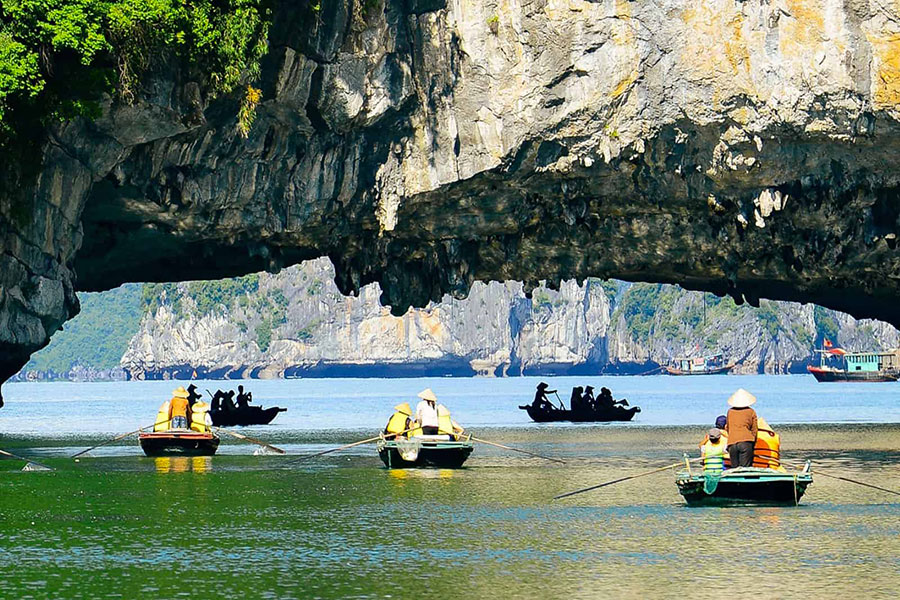 - Chèo thuyền Kayak hoặc ngồi đò nan tham quan hang Sáng, Tối.