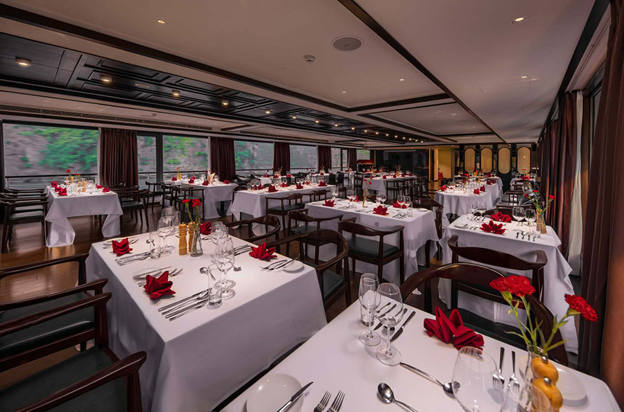 - Thưởng thức bữa tối sang trọng trên du thuyền.