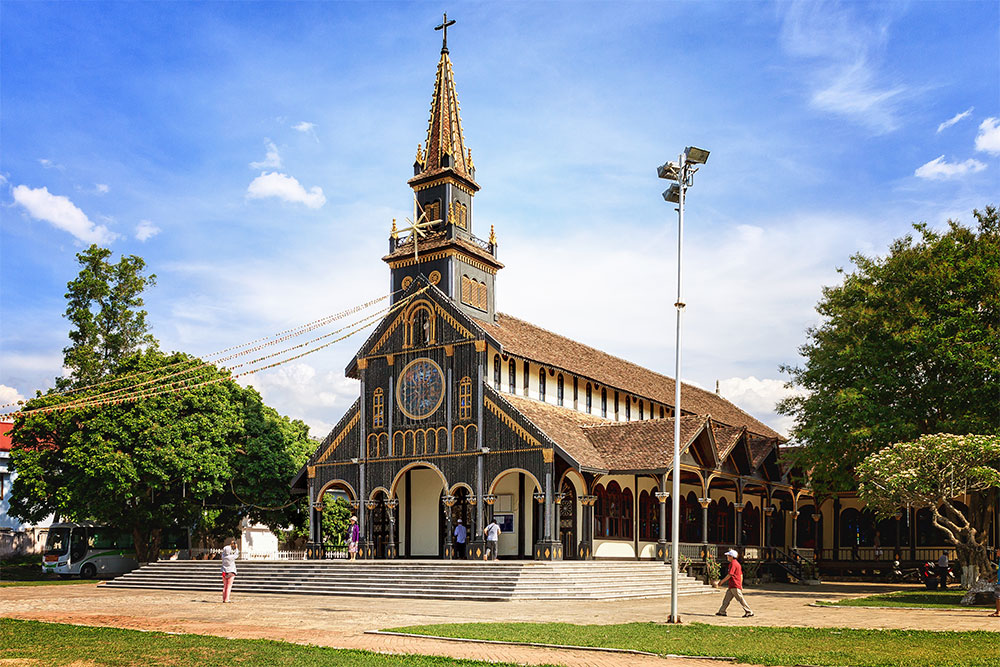 14h00: Di chuyển về TP Kon Tum, tham quan Nhà thờ Gỗ có tuổi đời trên 100 năm; Tòa giám mục Kon Tum – báu vật nằm giữa núi rừng Tây Nguyên bạt ngàn.