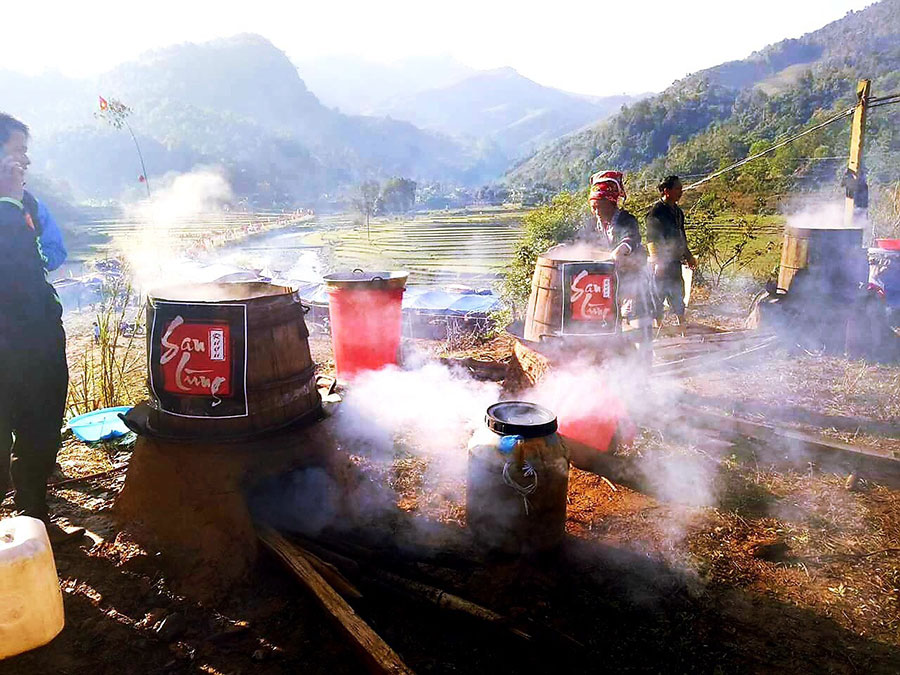 Free time in the evening to take photos at the Stone Church, explore the Sapa Love Market on Saturdays, or simply enjoy the famous grilled specialties and Sán Lùng wine to warm up in the cold of Sapa. Overnight in Sapa.
