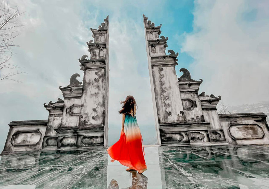 The spot includes 7 attractions that appeal to young people with their peculiar and rare scenery, such as the Bali Sky Gate, Moana girl statue, infinity lake, golden hand, swing of death, lonely tree, and coffee area.