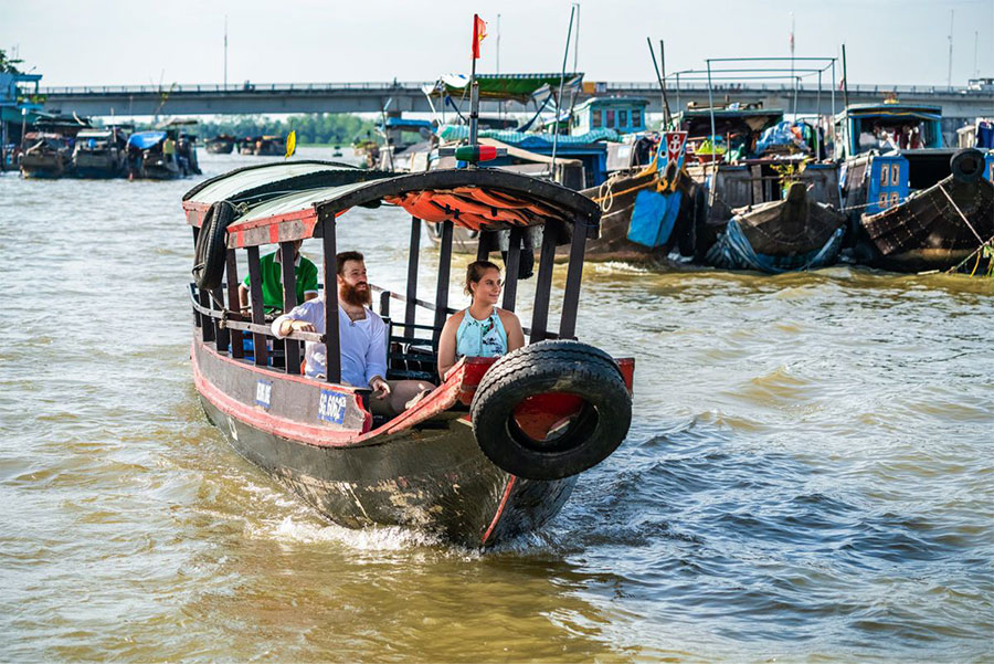 Take the boat trip to visit Cai Rang Floating Market, the biggest floating market in the Mekong.